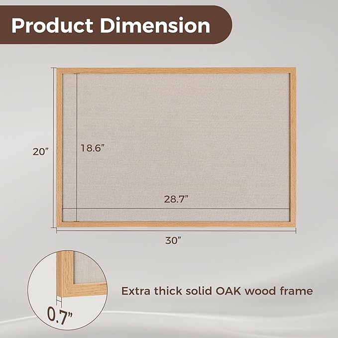 - OAK-Frame Material: Our cork boards for walls is made of 100% Oak wood which has well self-healing ability and repairability. The pin board features a four-ply splint design that is strong and thick enough not to be punctured by thumbtacks.