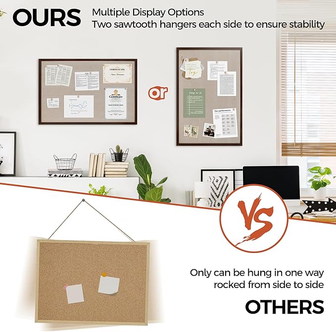 - Unique Design: Easily customize the board orientation to fit your space. Natural cork bulletin board add a classic look to your office or home. Both strong and stylish, it will be a great addition to your space