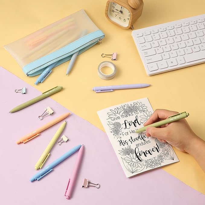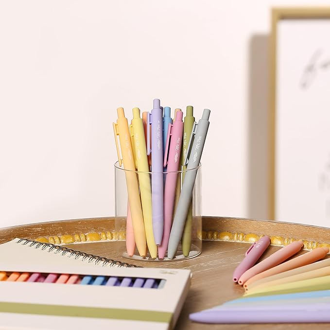 - Each pen boasts a sleek, colorful barrel design that not only looks stylish but also helps in quickly identifying and selecting a pen from your collection.