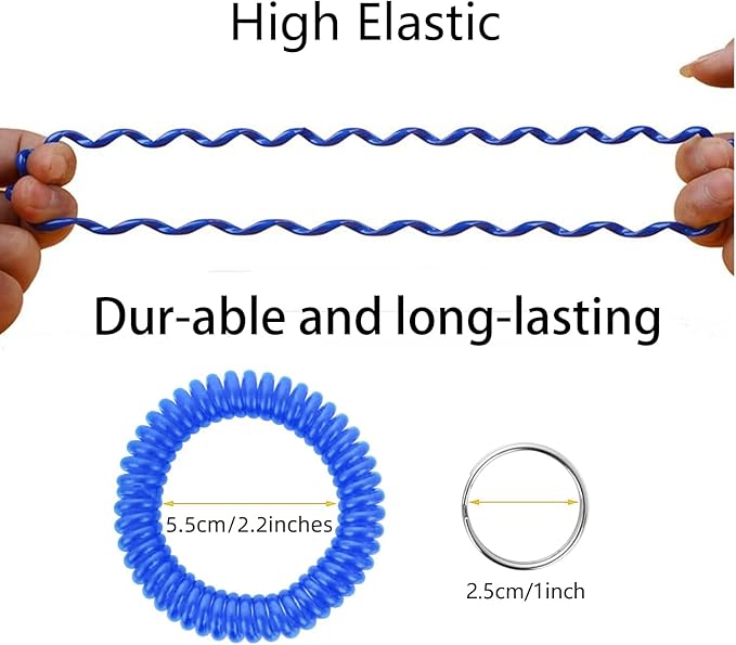 - Pack of 36 plastic coil stretch wristband keychains with blue colors, fit for personal items distinction, bunches of keys, luggage tags, memory sticks, pet name tags, etc.