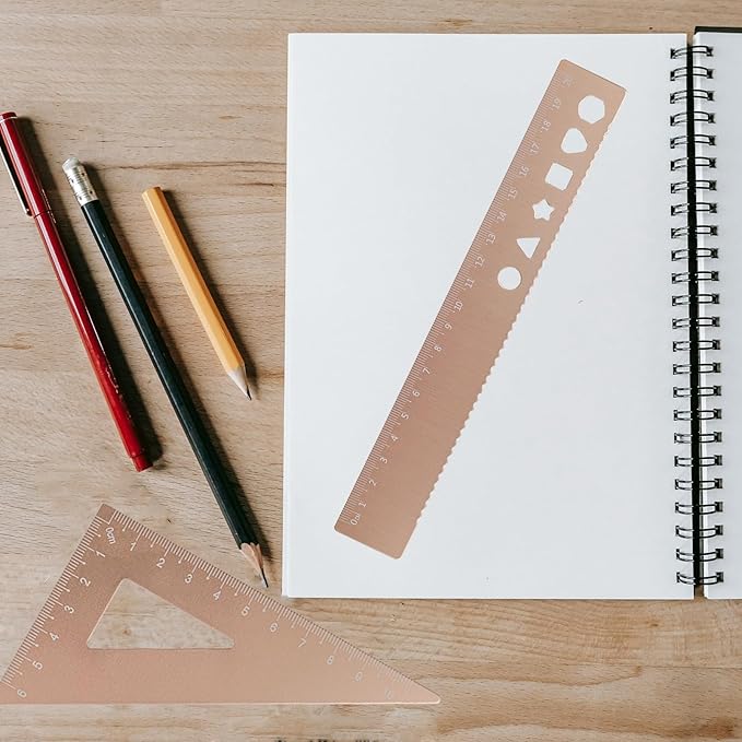 - Package Includes: 1pcs 8 inch (20 cm) straight ruler; 1 pcs 6 inch (15 cm) straight ruler; 1 pcs semicircle protractor; 1 pcs 45 degrees triangle ruler; 1 pcs 30/ 60 degrees triangle ruler.