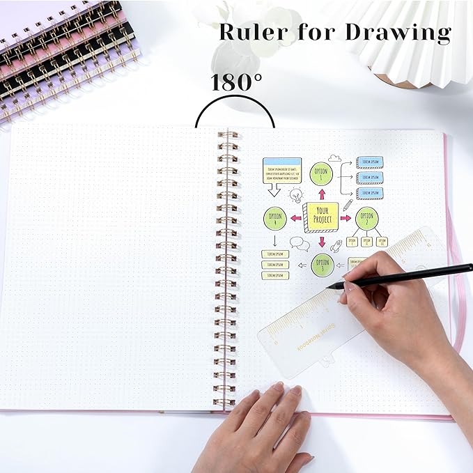 - Upgrade Practical Functions -- We added a pen insert on the cover of the dot journal to prevent pens from falling out. Removable ruler can help you measure and chart. Elastic band keep the cover from opening, saving space when you put it in your bag. Internal pockets store small cards and important note-taking notes.