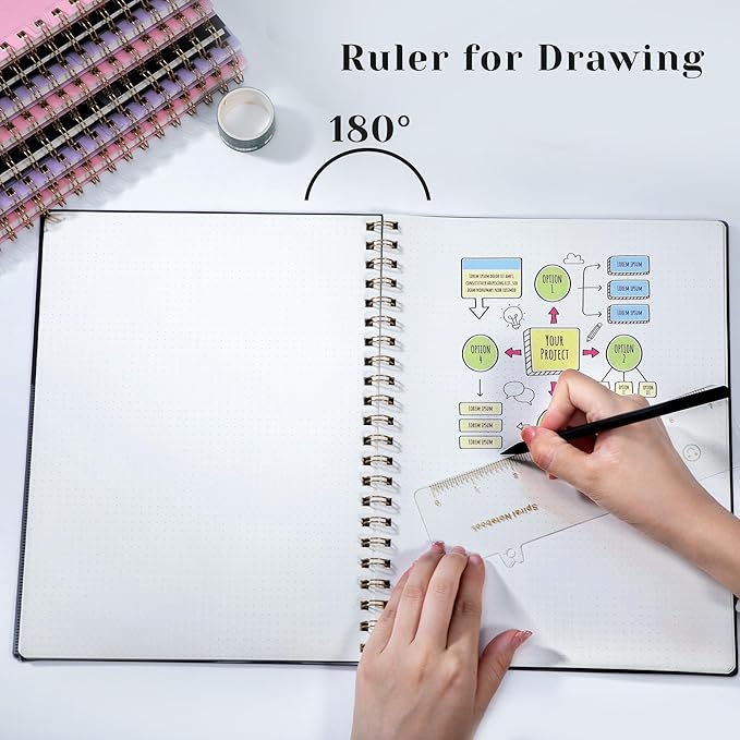 - Upgrade Practical Functions -- We added a pen insert on the cover of the dot journal to prevent pens from falling out. Removable ruler can help you measure and chart. Elastic band keep the cover from opening, saving space when you put it in your bag. Internal pockets store small cards and important note-taking notes.