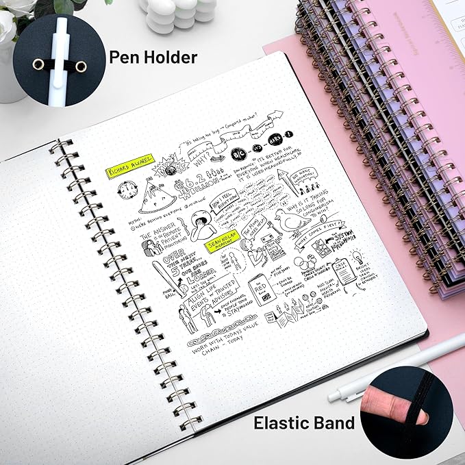 Yoment Bullet Dotted Journal Spiral Notebook 8.5 x 11 A4 Large Dot Grid Notebooks, 100 GSM Thick Dot Paper, Journaling Notebooks for Work School Sketching, A4 Black