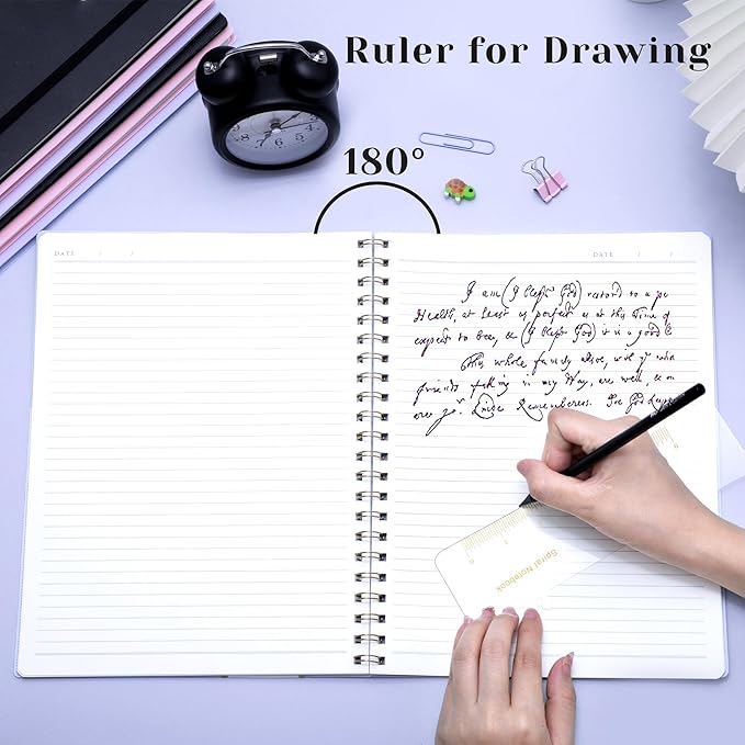 - Upgrade Practical Functions -- We added a pen insert on the cover of the notebook journal to prevent pens from falling out. Removable ruler can help you measure and chart. Elastic band keep the cover from opening, saving space when you put it in your bag. Internal pockets store small cards and important note-taking notes.