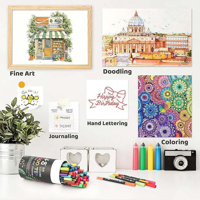 - STAY NICE AND ORGANIZED GREAT GIFT: Our Duo tip marker pens organized in the included container! Wonderful Gift for Birthday, Graduation, Halloween, Christmas, Thanksgiving day or anyone who loves drawing, painting, sketching, writing, journaling, brush lettering, crafting, doodling, watercolor painting, illustrations.