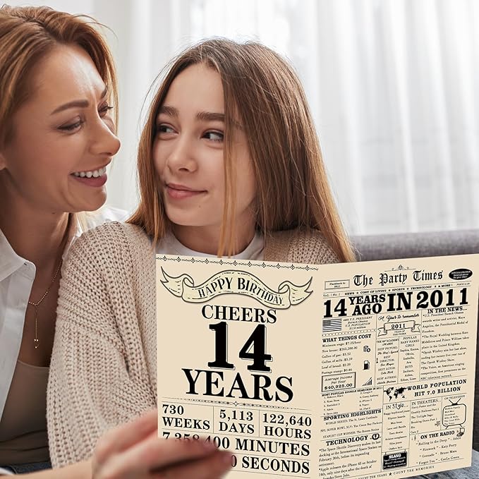 Retro 14th Birthday Card for Girls Boys, Funny 14th Birthday Gift Ideas for Daughter Son, Happy 14 Year Old Bday Decorations for Her Him