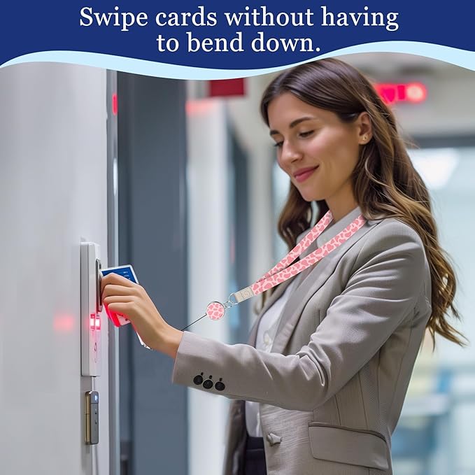 - Retractable Badge Reel: This lanyard with retractable badge reel can extend up to 15.75 '', allowing you to swipe the ID card to the desired position without the need to take them out or bend down. The cute badge reel is made of sturdy plastic and steel, ensuring durability and wear resistance. Moreover, this badge reel also comes with a split key-ring for attaching keys