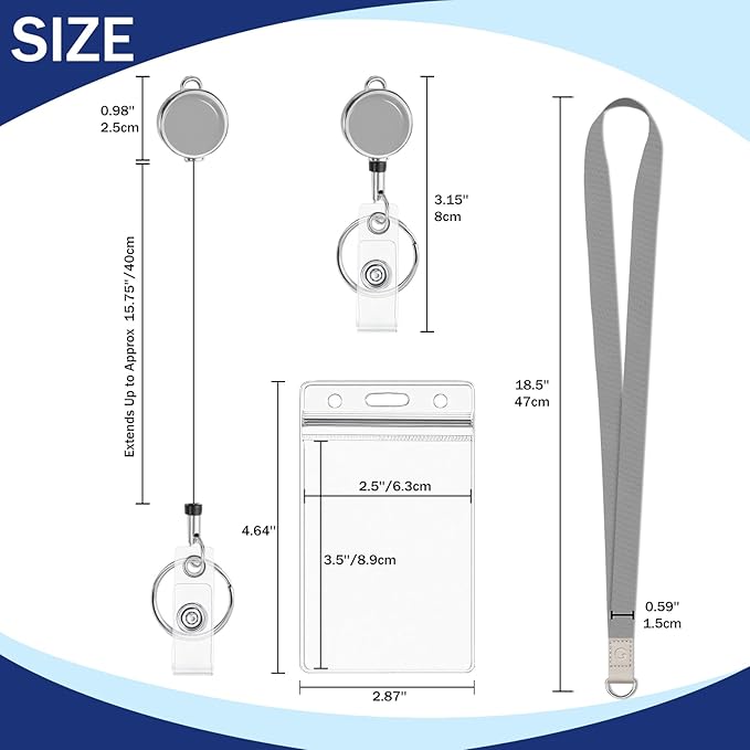 - Essential Daily: This necklace ID badge lanyard and retractable badge reel are designed in a classic black and grey color scheme, offering a simple, elegant, and versatile look that meets your various needs in work, life, and travel. Package Included: ID lanyard retractable reel x2, thickened waterproof ID holders x2. This 2-piece combination meets different needs, with one Suitable for personal use and the other suitable for gifting to colleagues, family, or friends
