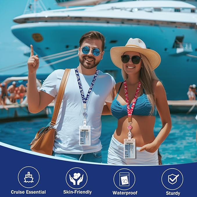 - Novelty Design: This necklace ID badge lanyard and retractable badge reel features a captivating design inspired by the unique patterns of red blue Cruise Ship. The elegant and vibrant aesthetic of the cruise ship pattern adds a touch of sophistication and nautical charm to the lanyard, making it a stylish and functional accessory for carrying ID badges. Package Included: ID lanyard retractable reel x2, thickened waterproof ID holders x2