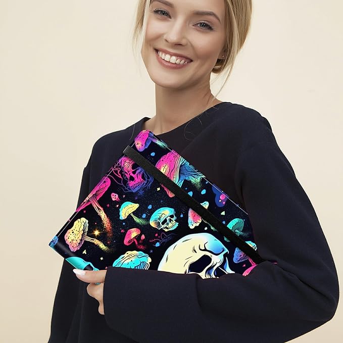 Padfolio Folder with Clipboard,Portfolios Organizer Clipboards with Storage Clipboard Writing Pad PU Leather Conference Document Organizer with Business Card Holder,Mushroom Skull