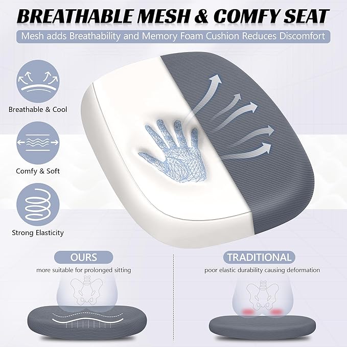 - Breathable & Soft: Imagine sinking into an mesh office chair that feels like sitting on a cloud. Breathable mesh helps with air circulation, and a soft and high rebound cushion, achieves a perfect combination of breathability and comfort, staying cool and comfortable even during the longest working hours.