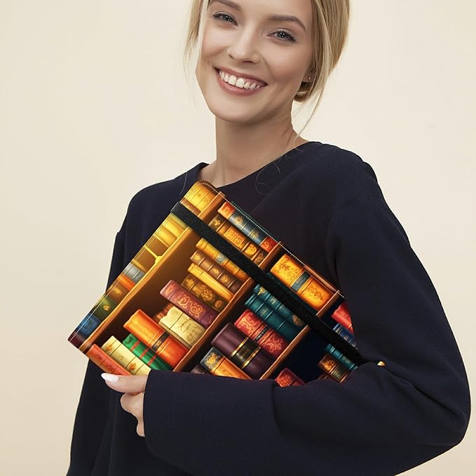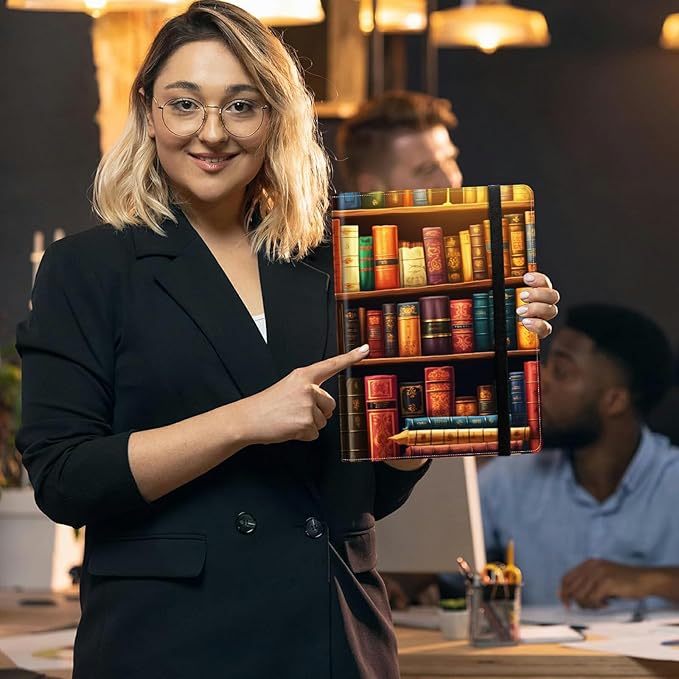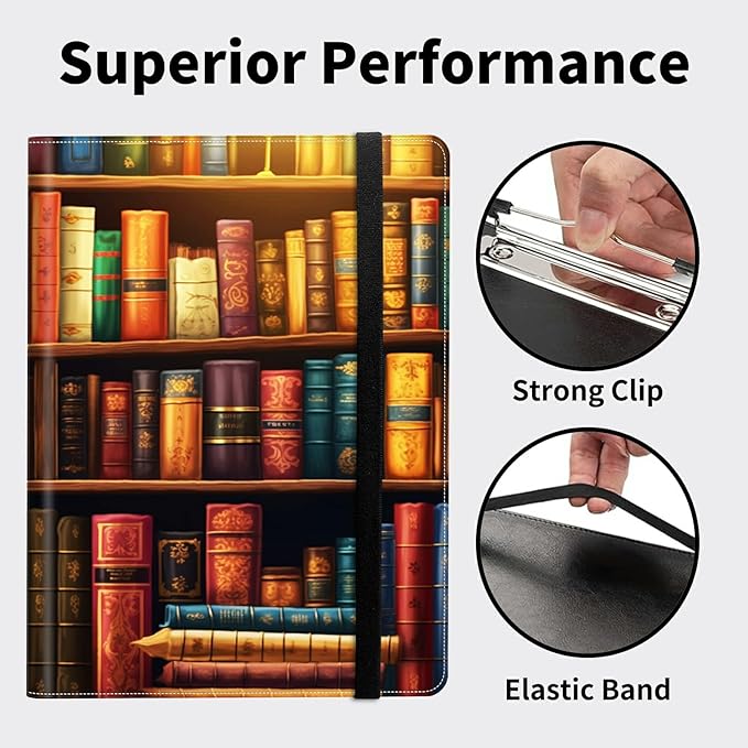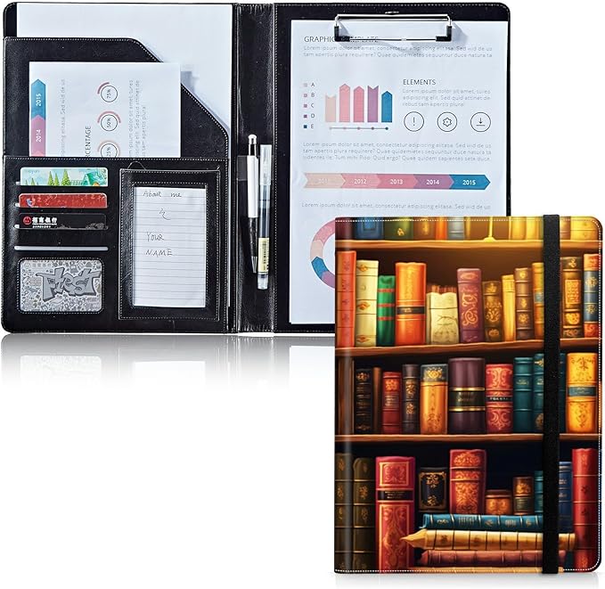 Padfolio Folder with Clipboard,Portfolios Organizer Clipboards with Storage Clipboard Writing Pad PU Leather Conference Document Organizer with Business Card Holder,Vintage Bookshelf