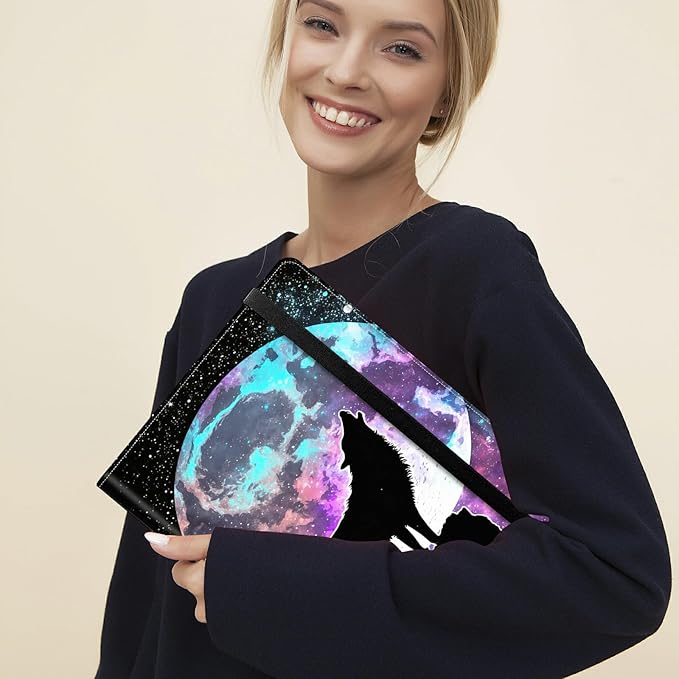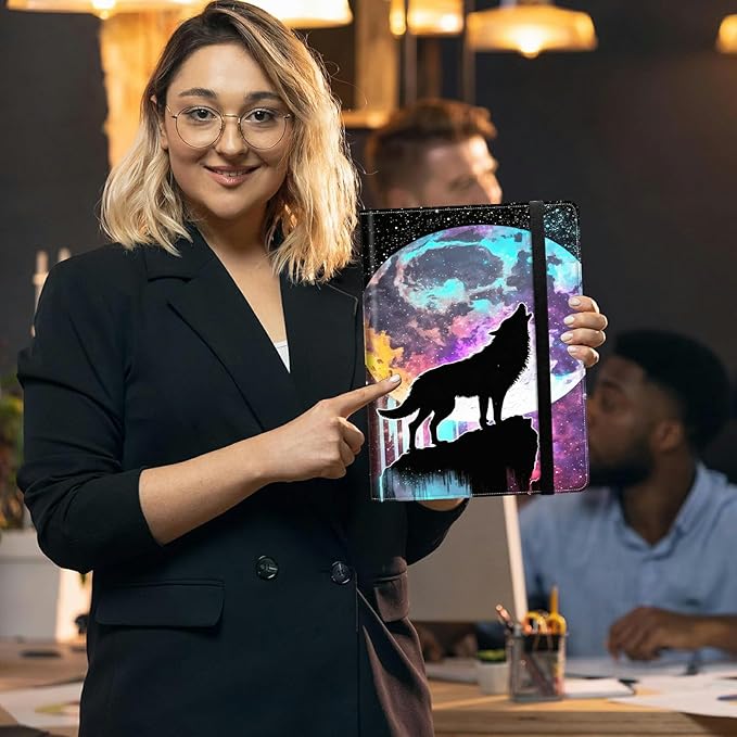 Padfolio Folder with Clipboard,Portfolios Organizer Clipboards with Storage Clipboard Writing Pad PU Leather Conference Document Organizer with Business Card Holder,Moon Wolf