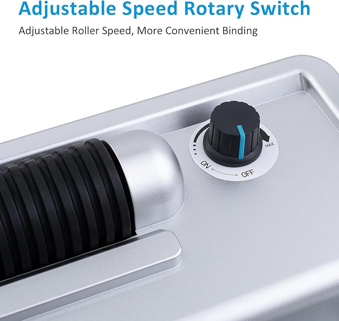 - Efficient and Convenient Operation:Equipped with a motorized coil inserter for hands-free bookbinding, you can produce professional books quickly and easily, whether at home or in the office. The motorized coil inserter increases speed and handles a large number of jobs with ease. It is pre-lubricated and comes with oil-absorbent paper, making it easy to handle before use and saving time and effort