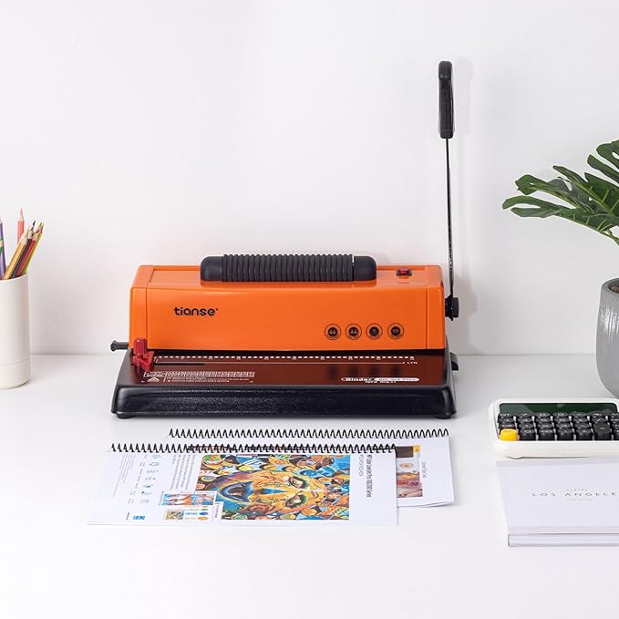 - Multiple Size Adaptability:Tianse coil binders are compatible with Letter, A4 and A5 sizes, and the unique open-throat design allows for the insertion of large and non-standard pages to meet the needs of special projects. The mounting handle needs to be 90 degrees vertical to ensure precise operation and flexible response to a variety of binding tasks