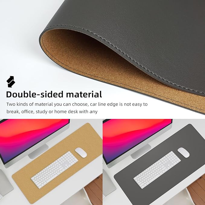 - Elevate Your Workspace: Our reversible desk pad is designed to complement any office or home desk with its premium materials and elegant black thread stitching. The natural cork base provides extra grip to keep your desk mat in place.