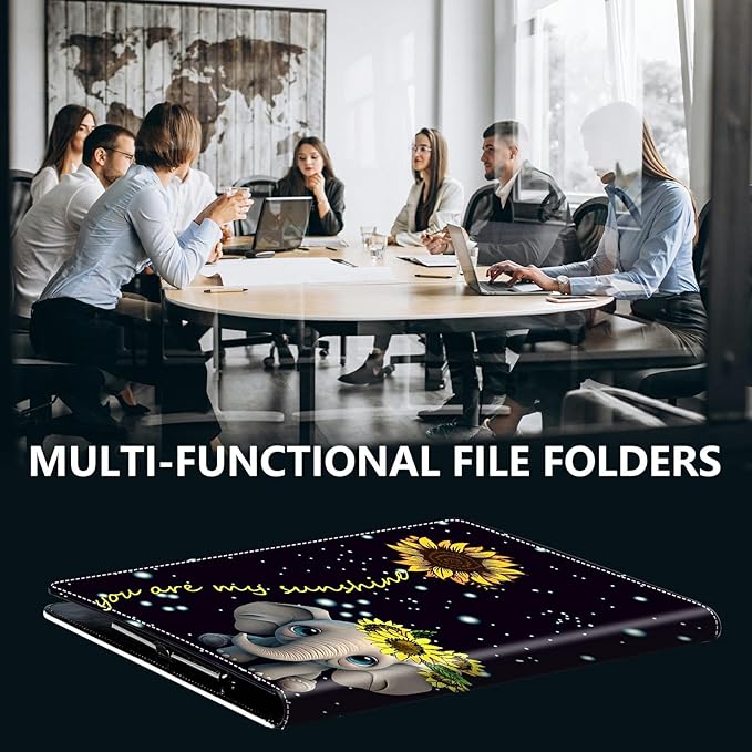 PU Leather Padfolio Clipboard Notepad with Pen Loop and Elastic Strap Interview/Resume Document Organizer for Business School Office,Elephant Sunflower
