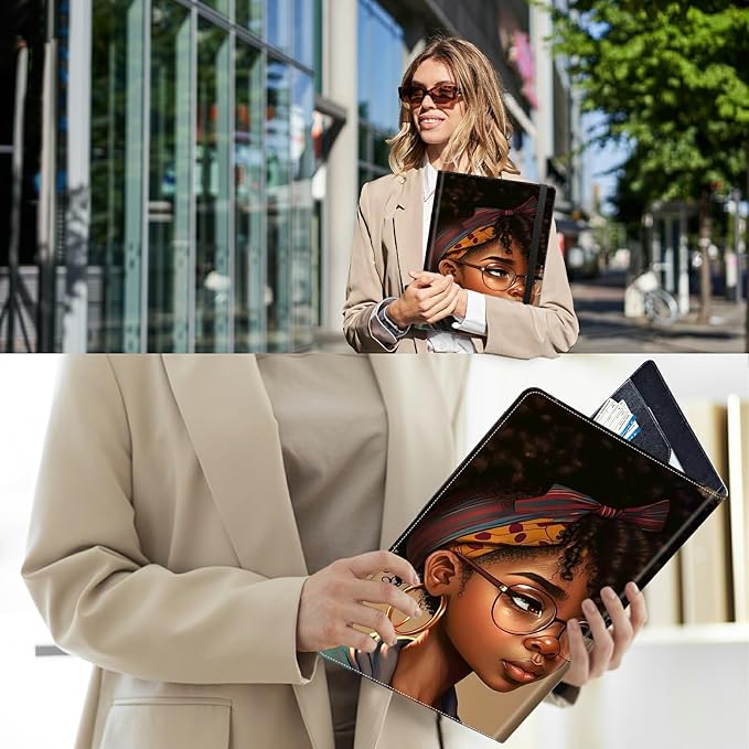 PU Leather Padfolio Clipboard Notepad with Pen Loop and Elastic Strap Interview/Resume Document Organizer for Business School Office,Black African American