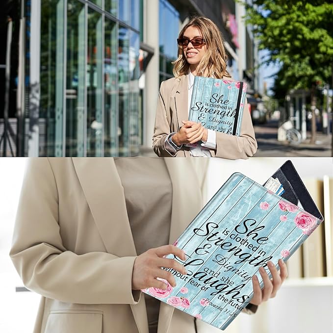 PU Leather Padfolio Folder Clipboard Portfolios Organizer Conference Document Organizer with Business Card Holder Storage Clipboard Writing Pad,Bible Quote Proverbs 31-25