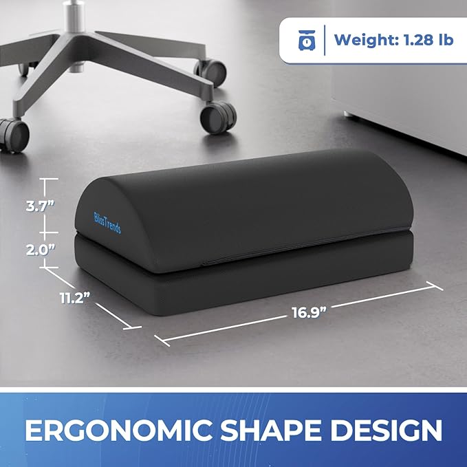 - 【Comfortable Experience】The BlissTrends foot rest has two layers: the lower layer measures 16.9"*11.2"*2.0", and the upper layer is 3.7" thick. The foot stool is ergonomically designed with sufficient height and curvature to better relieve the pressure on your limbs and discomfort when sitting for long periods of time.