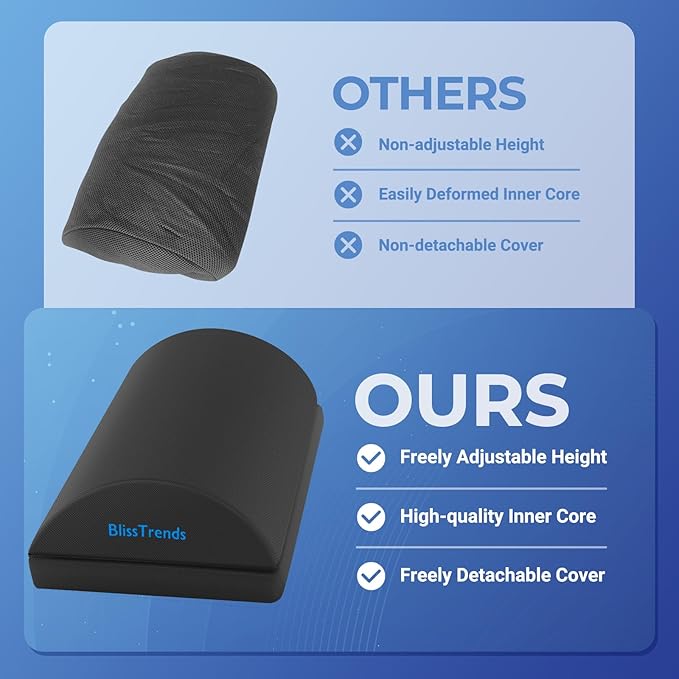 - 【Multiple Use Options】BlissTrends foot rest can be used under your feet or behind your knees. Whether in the office or on the go the foot rest can make sitting more comfortable. Also great as an airplane footrest. You will gradually develop the correct sitting habits in the process of using the foot rest under desk at work, which can effectively relieve the pressure on your spine and allow your body to be more stretched.