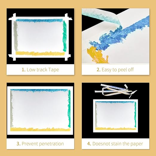 - 【Easy Peeling】The artist tape for watercolor paper is made of crepe paper, it can be torn apart by hand with gentle force. The white tape with low viscosity features that is easy to peel off without any damage to the watercolor paper. More efficient and convenient for painter. Please don't stick/peel this tape on/off paper with a intended strong strength.