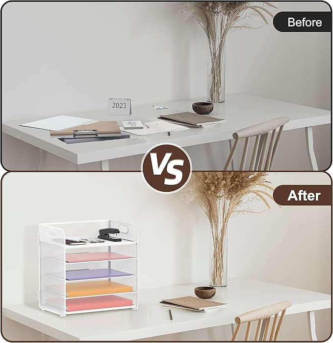 - [Handle Design] The handle design makes the paper tray organizer easy to move. These white desk organizer are suitable for women, students, office clerks, teachers, and teens, offering both functionality and aesthetic pleasure.
