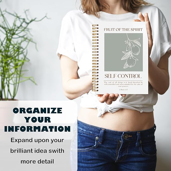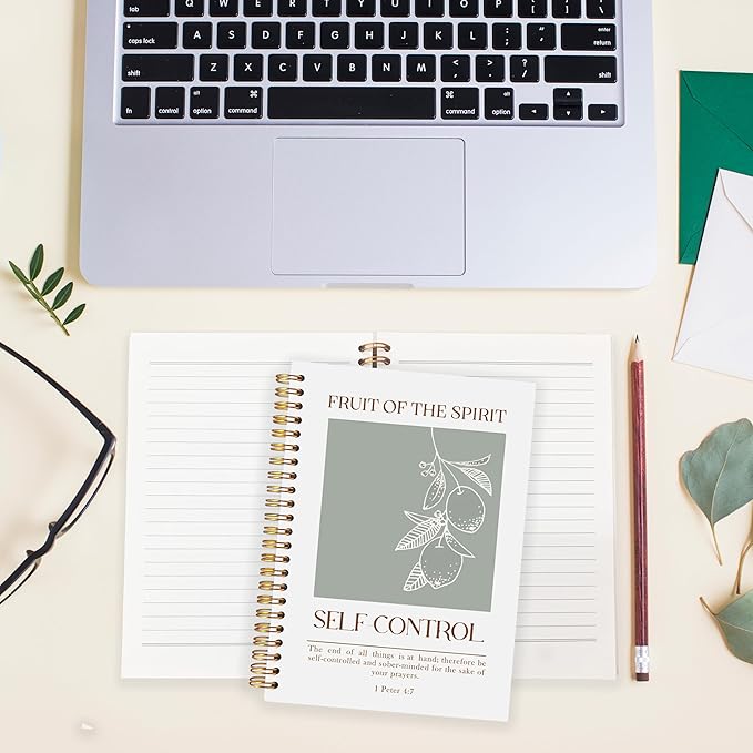 BearCake Fruit of the Spirit Self-Control Christian Notebook Journal, Christian Gifts for Women, Bible Notebooks for Note Taking, Bible Journaling Notebook, Hardcover Spiral Notebook 5.5x8.3