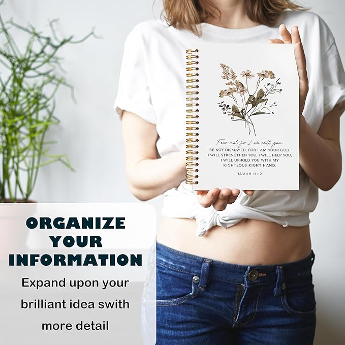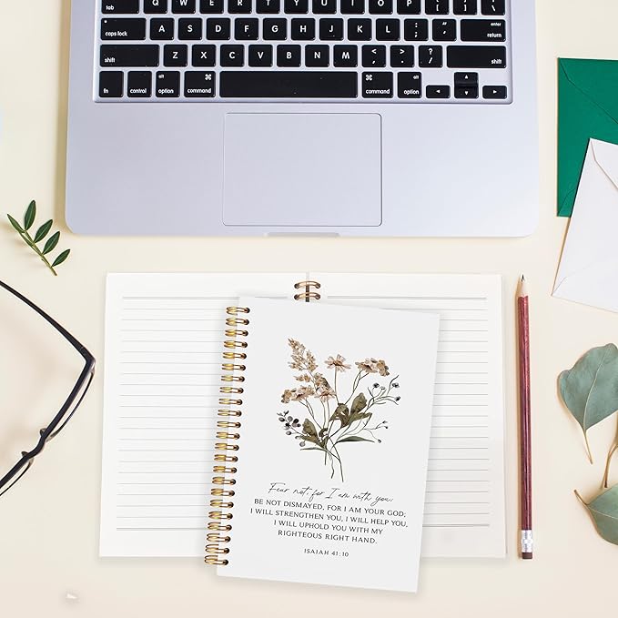 BearCake Bible Notebooks for Note Taking,Christian Notebook Journal, Fear not for I am with You Floral Christian Notebook Journal, Hardcover Spiral Notebook 5.5x8.3
