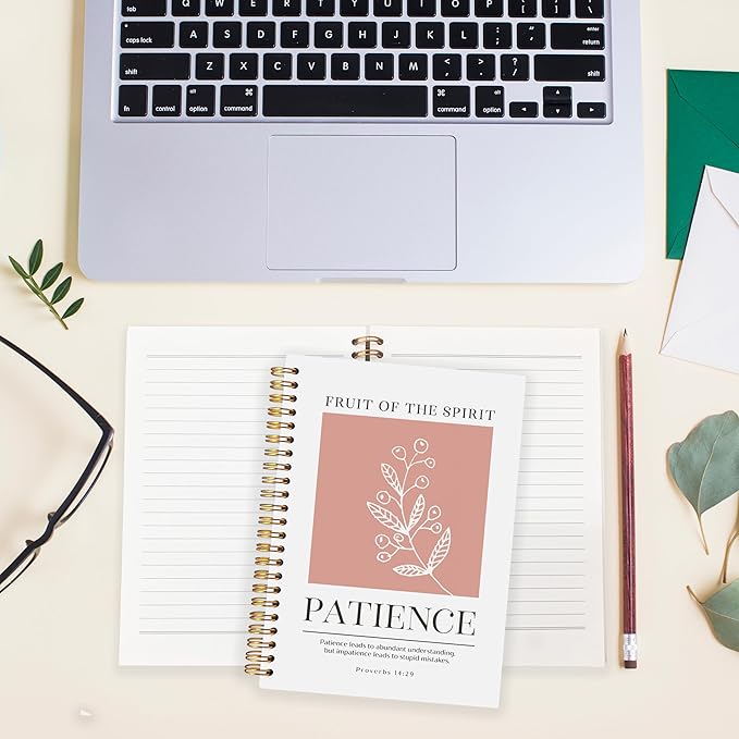 BearCake Fruit of the Spirit Patience Christian Notebook Journal, Christian Gifts for Women, Bible Notebooks for Note Taking, Bible Journaling Notebook, Hardcover Spiral Notebook 5.5x8.3