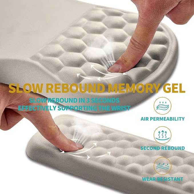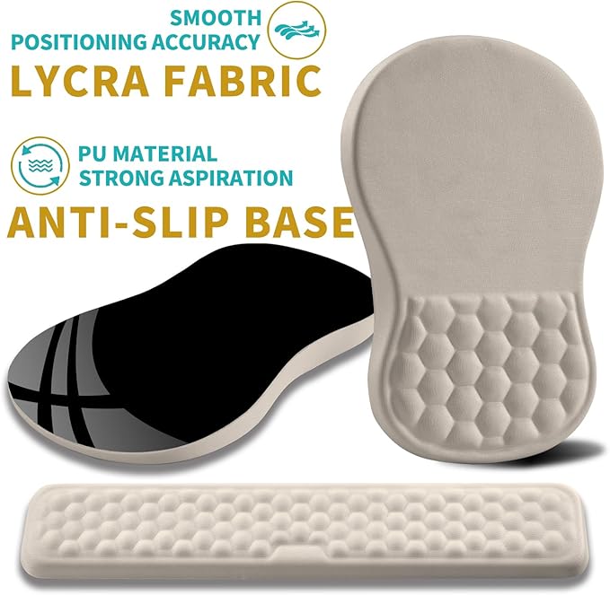- 【Ergonomic Massage Design】The innovative ergonomic slope and massage bump design perfectly support the wrist and palm. Massage bump design can effectively relieve wrist pain and fatigue, improve carpal tunnel syndrome (CTS), strengthen the air circulation between wrist and mouse pad, prevent sweating, and keep your wrist in the most comfortable state.
