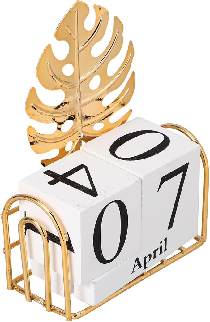 SUPVOX Wooden Block Calendar for Desk Daily Desktop Perpetual Calendar Wood Month Date Display Blocks Farmhouse Desk Accessories for Home Office Decor Reusable Yearly Monstera Leaf Design