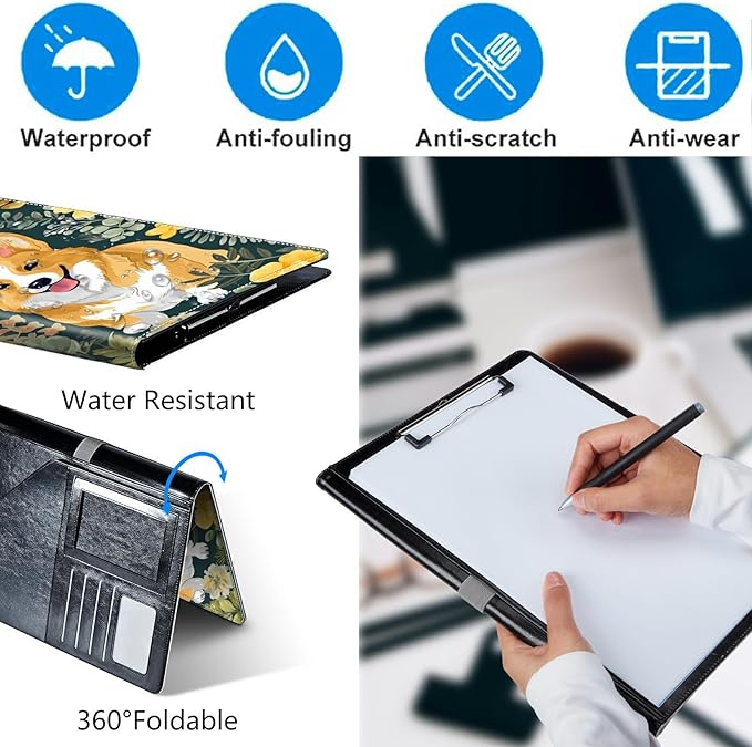 Dog Flower Padfolio Folder with Clipboard,Portfolios Organizer Clipboards with Storage Clipboard Writing Pad PU Leather Conference Document Organizer with Business Card Holder