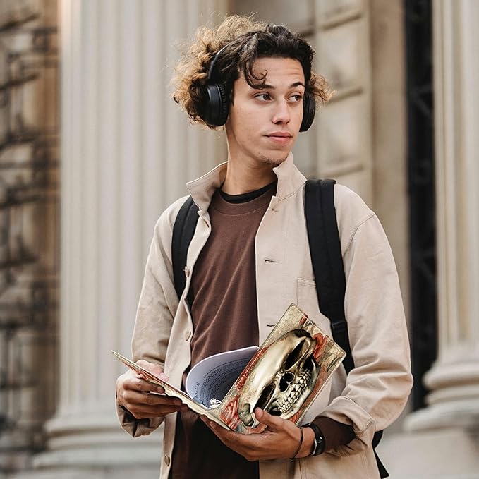 Skull Roses PU Leather Padfolio Clipboard Notepad with Pen Loop and Elastic Strap Interview/Resume Document Organizer for Business School Office