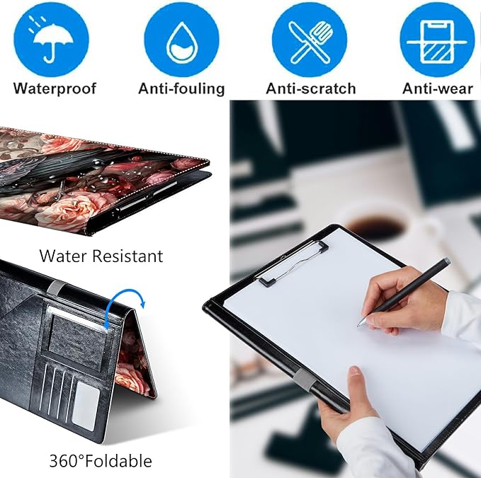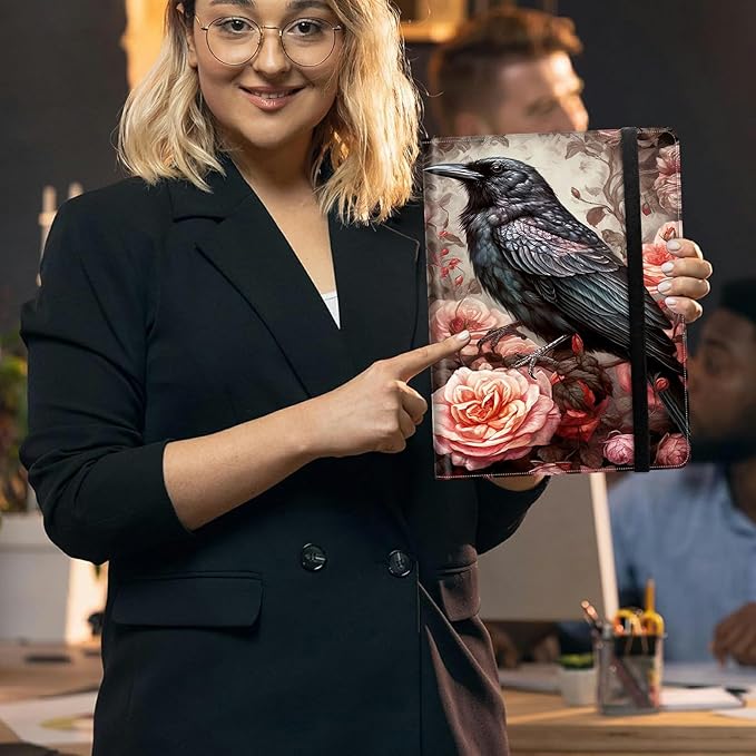 Bird and Roses Padfolio Folder with Clipboard,Portfolios Organizer Clipboards with Storage Clipboard Writing Pad PU Leather Conference Document Organizer with Business Card Holder