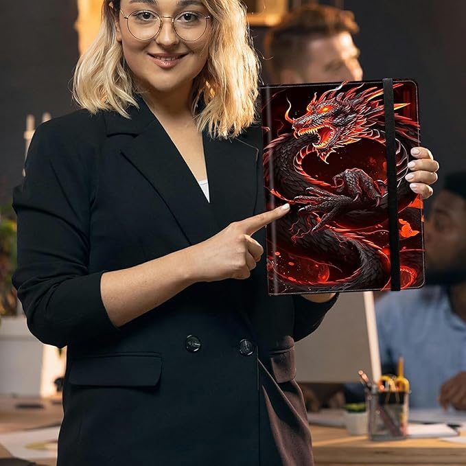Red Dragon PU Leather Padfolio Clipboard Notepad with Pen Loop and Elastic Strap Interview/Resume Document Organizer for Business School Office