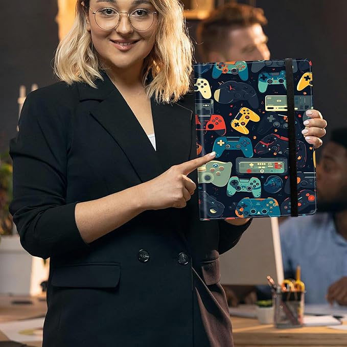 Gaming Controllersca PU Leather Padfolio Clipboard Notepad with Pen Loop and Elastic Strap Interview/Resume Document Organizer for Business School Office