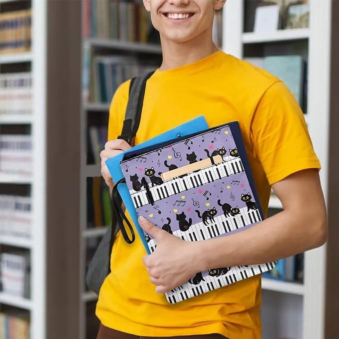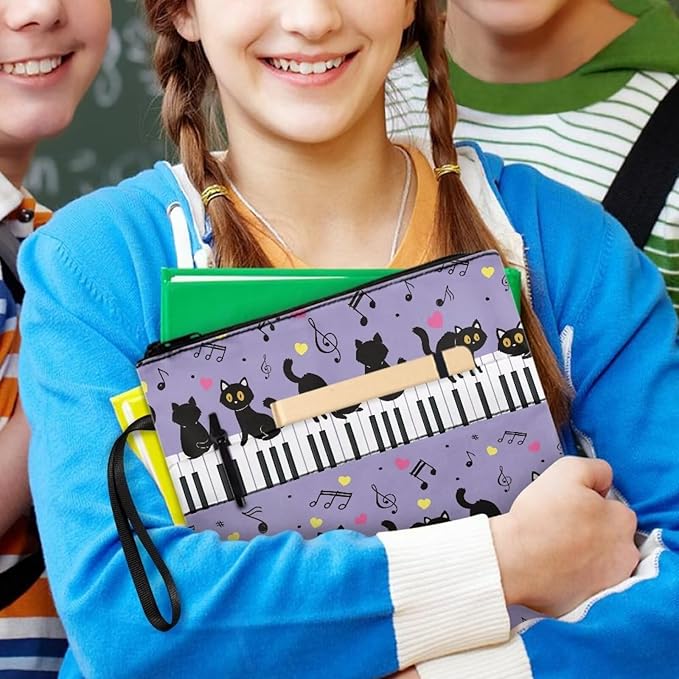 COEQINE Book Sleeve Pouch Purple Cats Piano Keychain Pattern Book Covers for Hardcover Paperbacks Purple Floral Book Cover Book Clothing