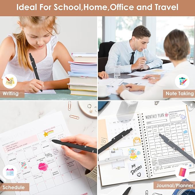 - 【Retractable Design】Click to open/close, and the tip will retract and come out automatically, which will not stain your book or pocket. Also, the satisfying and sensitive click response provides you with a great way to relieve stress and spark inspiration.