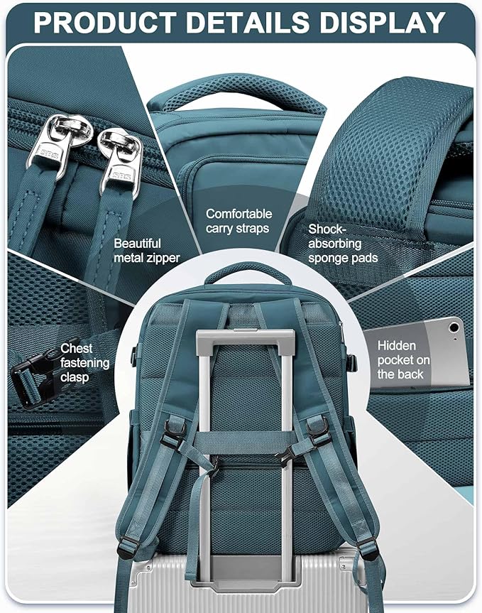 - ✈【Large Flight-approved Travel Backpack】Large backpack size: (W x L x H) 45 cm x 36 cm x 20 cm / 17.7 x 14.2 x 7.9 inches. Weight: 2.9Lb/1.3Kg. Fits most airline regulations.180 degree zipper closure helps you pass through the security check quickly. Easy to put in luggage rack or under seats. Our backpack is not only perfect for travel, but also for everyday use. The trolley sleeve allows you to conveniently slide it over the handle of your luggage for easy transport.