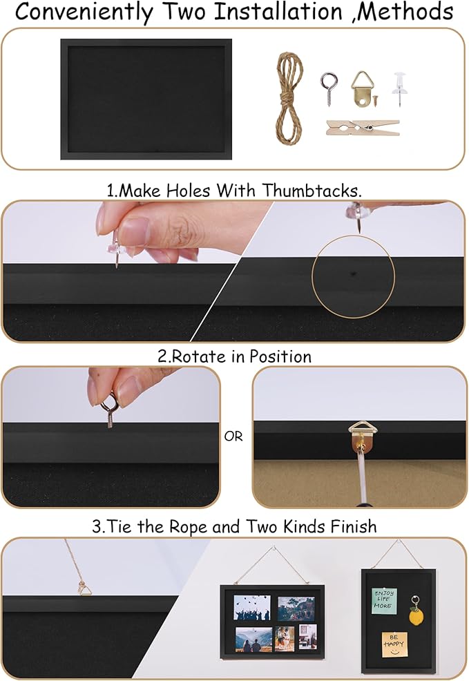 - 【Easy to Use】:The Corkboards we provide detailed instructions are very easy to install, two styles of hooks also provide you with more options for mounting vertical or horizontal.We have also pre-installed hooks for your convenience
