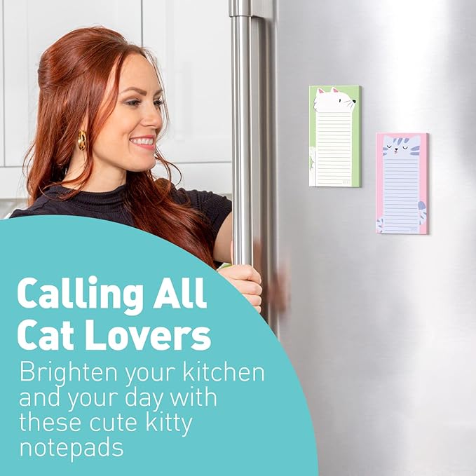 - 4 Cute Designs for Cat Lovers –– Why settle for the same old boring shopping list notepad? Embrace the love for your pets and inject some feline fun into your every day with these cat note pads. Each set features 4 unique shopping list notepads designs that bring some personality to the heart of your kitchen