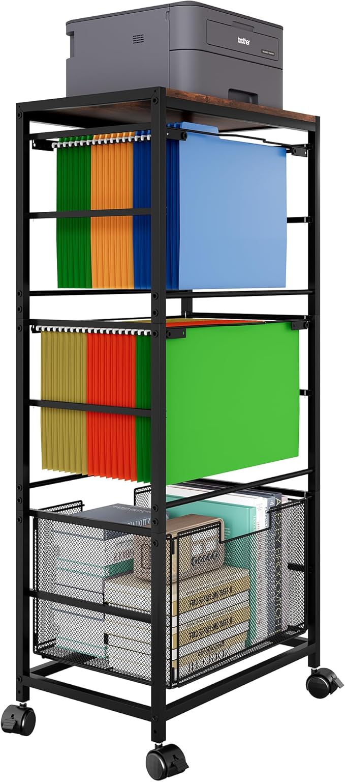 - Sturdy and Durable: This rolling file cart with hanging file folders is constructed with high-quality metal, the top shelves made of wood rather than metal mesh makes it easier to stand heavy items