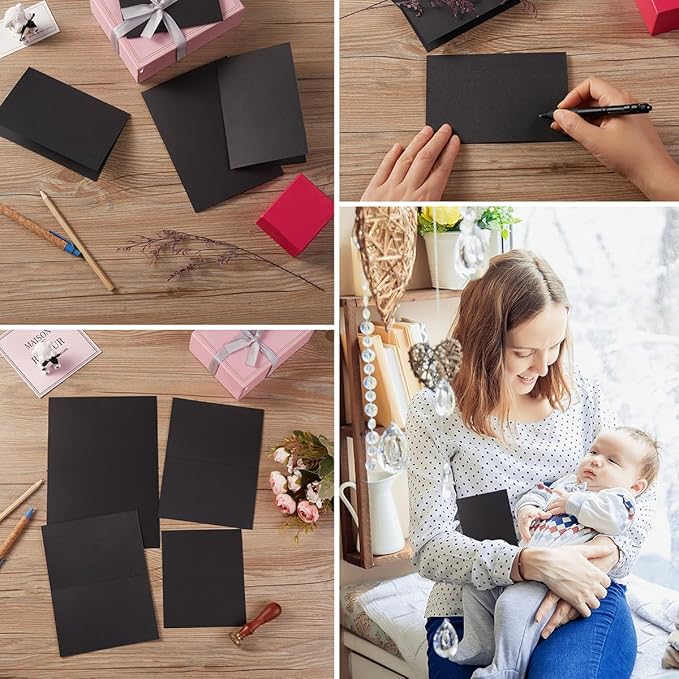 - Black Blank Greeting Cards: 50 sheets 2x3.5 Inches blank cardstocks folded(not include envelopes);