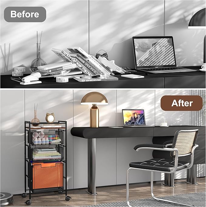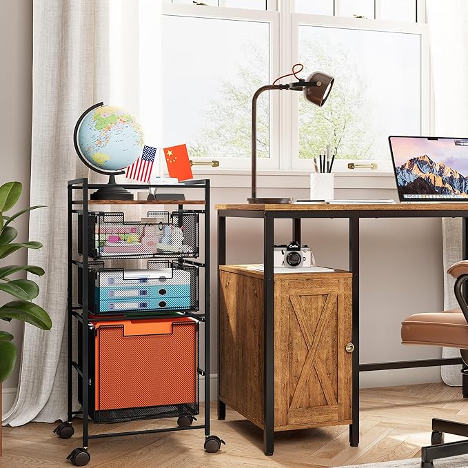 - Measuring just the right size to fit under your desk, this rolling file cabinet is a space-saving marvel. It provides ample storage space without taking up valuable square footage, making it ideal for small offices or cubicles.