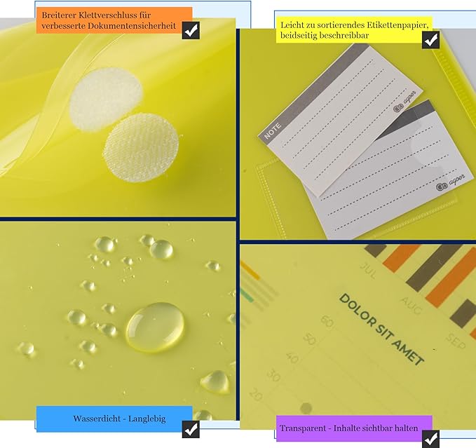- 【Label】Our Water Resistant plastic file folder has a pocket for labels, where keywords can be written to easily distinguish files.These translucent document holders are the best way to organize your important papers, memos, projects, presentations, photos, letters, and forms。