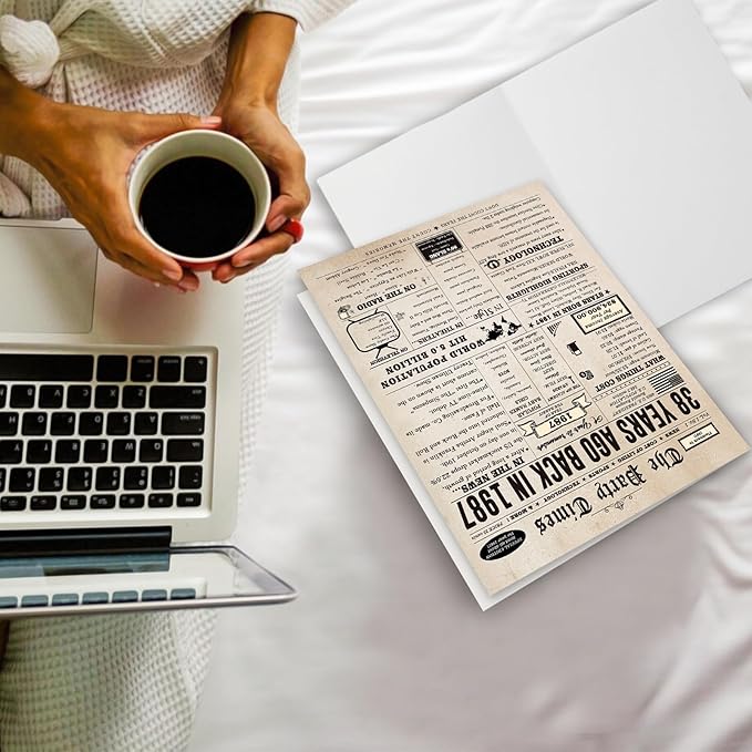 - 【Product Size】A 10.6 x 7.9 inches 38 year old birthday card stands out for its oversized size. It comes with an envelope for easy mailing or gifting.