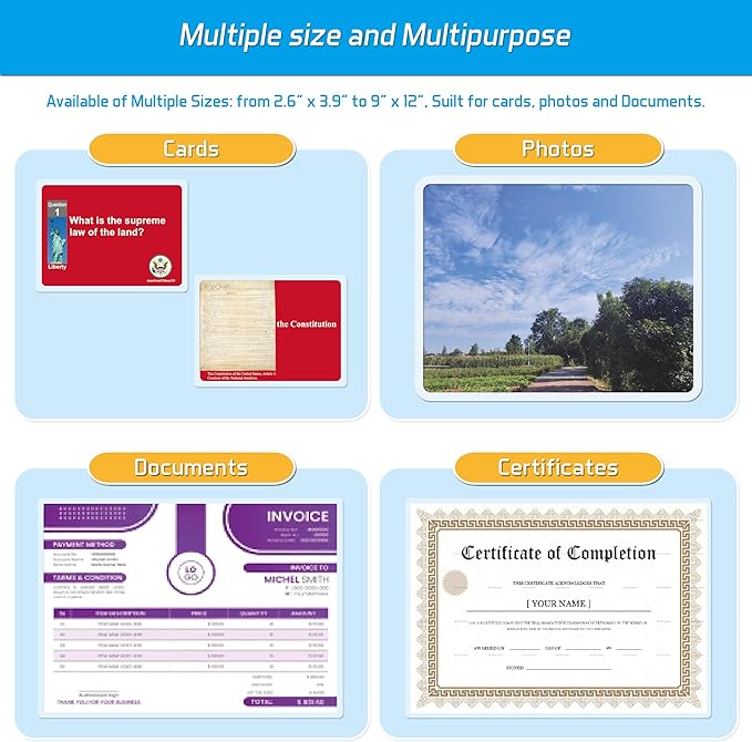 - Unmatched Durability and Clarity: Crafted from 18 mil thick and transparent PET, our lamination pouches surpass competitors in thickness. They provide long-lasting protection, waterproofing, tear resistance, and fade resistance while maintaining high transparency and adhesion. Your small documents and photos will stay pristine for years.