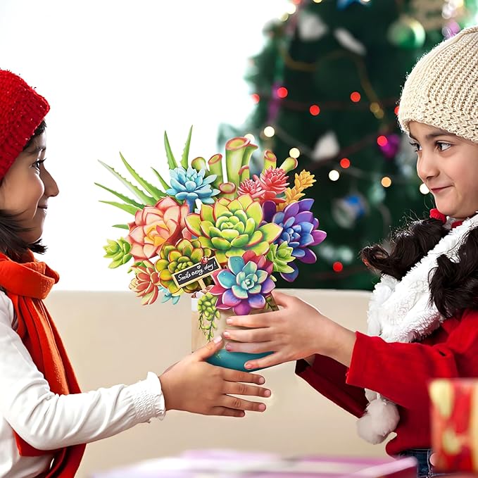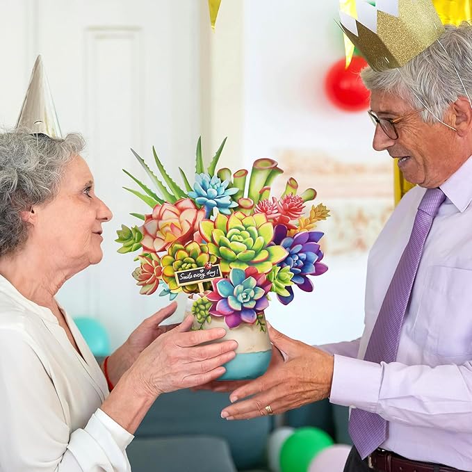Pop Up Flowers Cards, Paper Flowers Bouquet 3D Popup Greeting Cards with Blank Note Card and Envelope for Birthday, Easter Cards, Anniversary, for Women Lover,12'' Succulent Planters